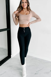 Glad You Stayed Square Neck Long Sleeve Crop Top (Tan)