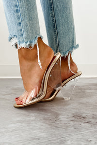 Glamour & Glow Clear Strap Lucite Heels (Gold)