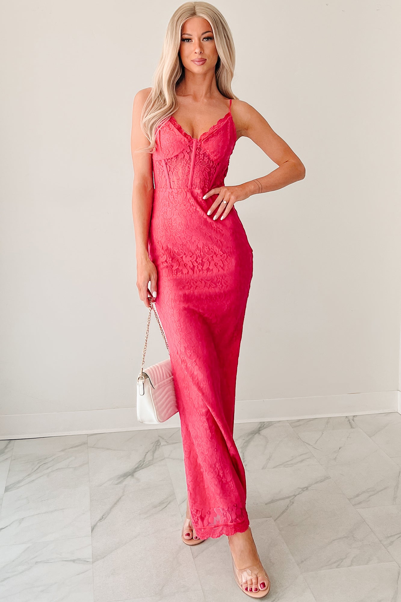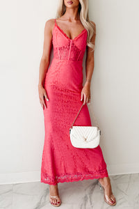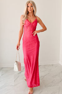 Glow Loudly Corset Sleeveless Lace Maxi Dress (Hot Pink)