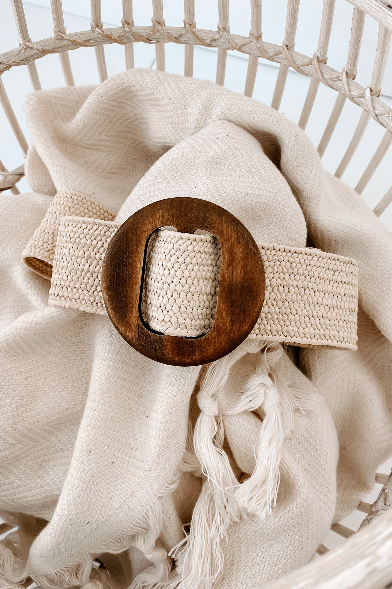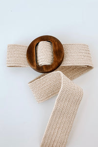 Gone Full Circle Woven Elastic Wood Buckle Belt (Ivory) - NanaMacs