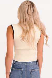 Gonna Go Far Contrast Trim Sleeveless Top (Cream/Black)