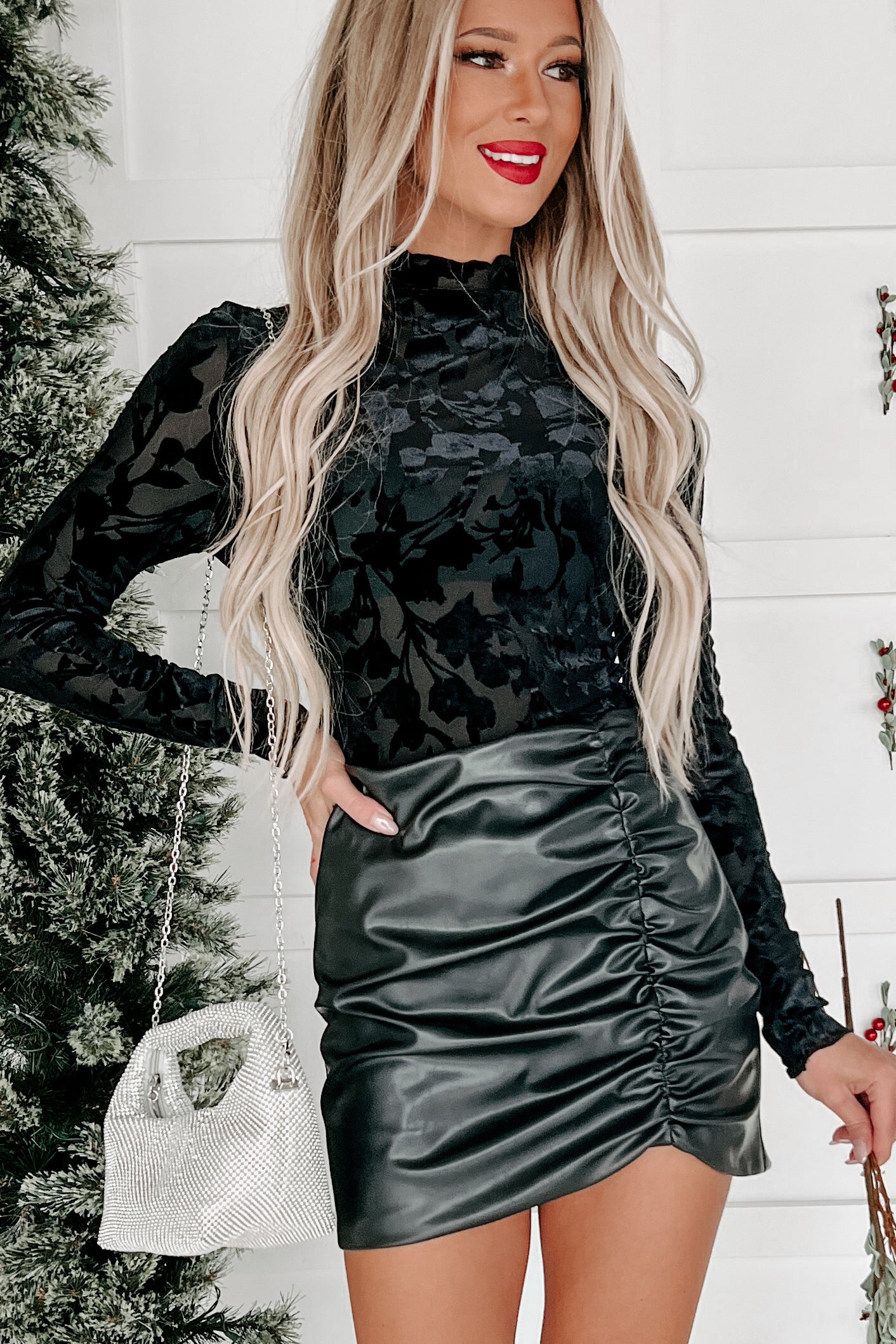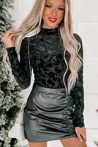 Good Natured Velvet Floral Bodysuit (Black) - NanaMacs