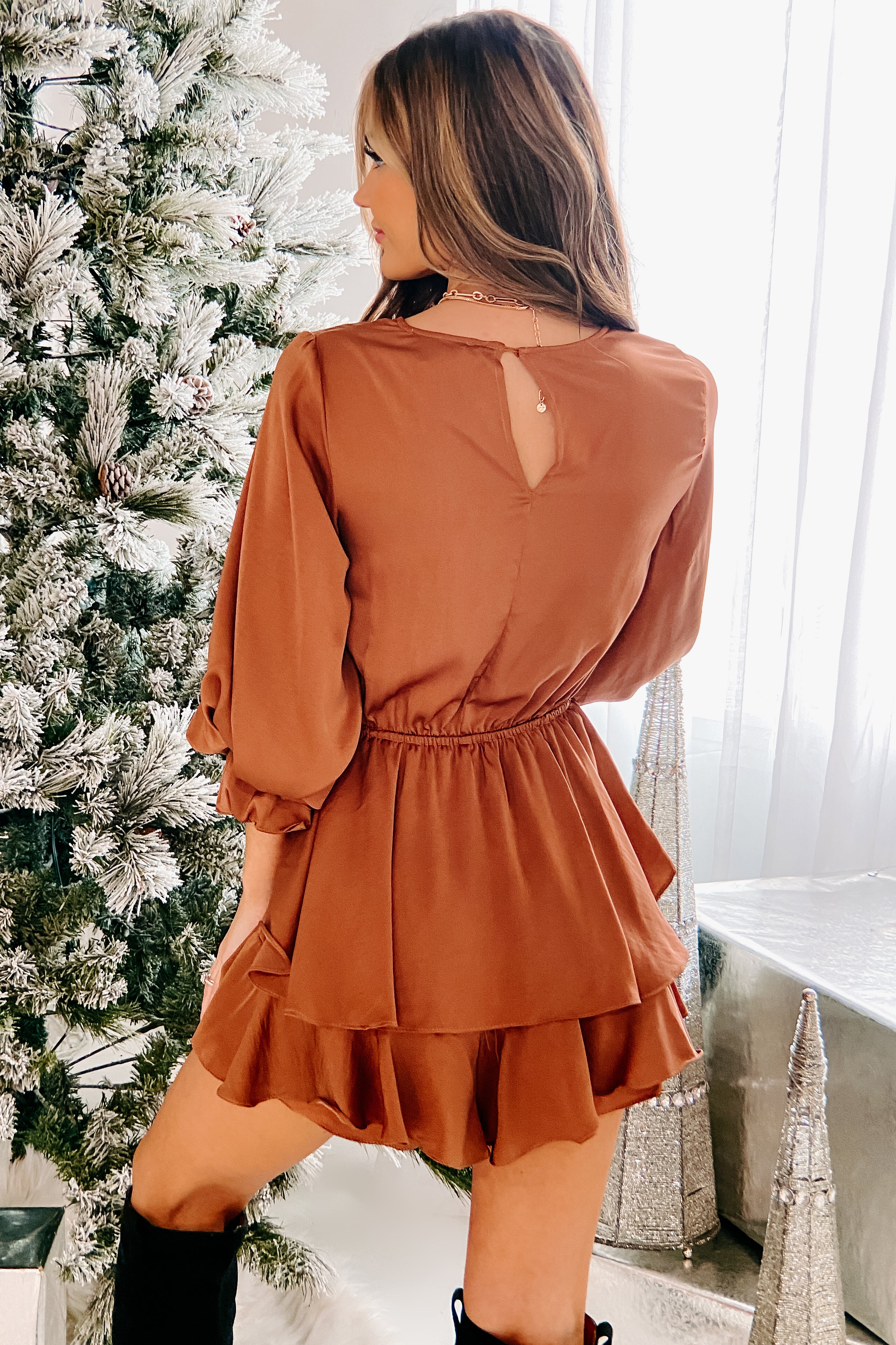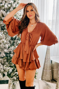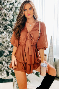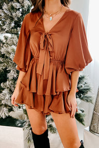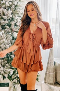 Gossip Twirl Tie-Front Ruffled Romper (Cinnamon)