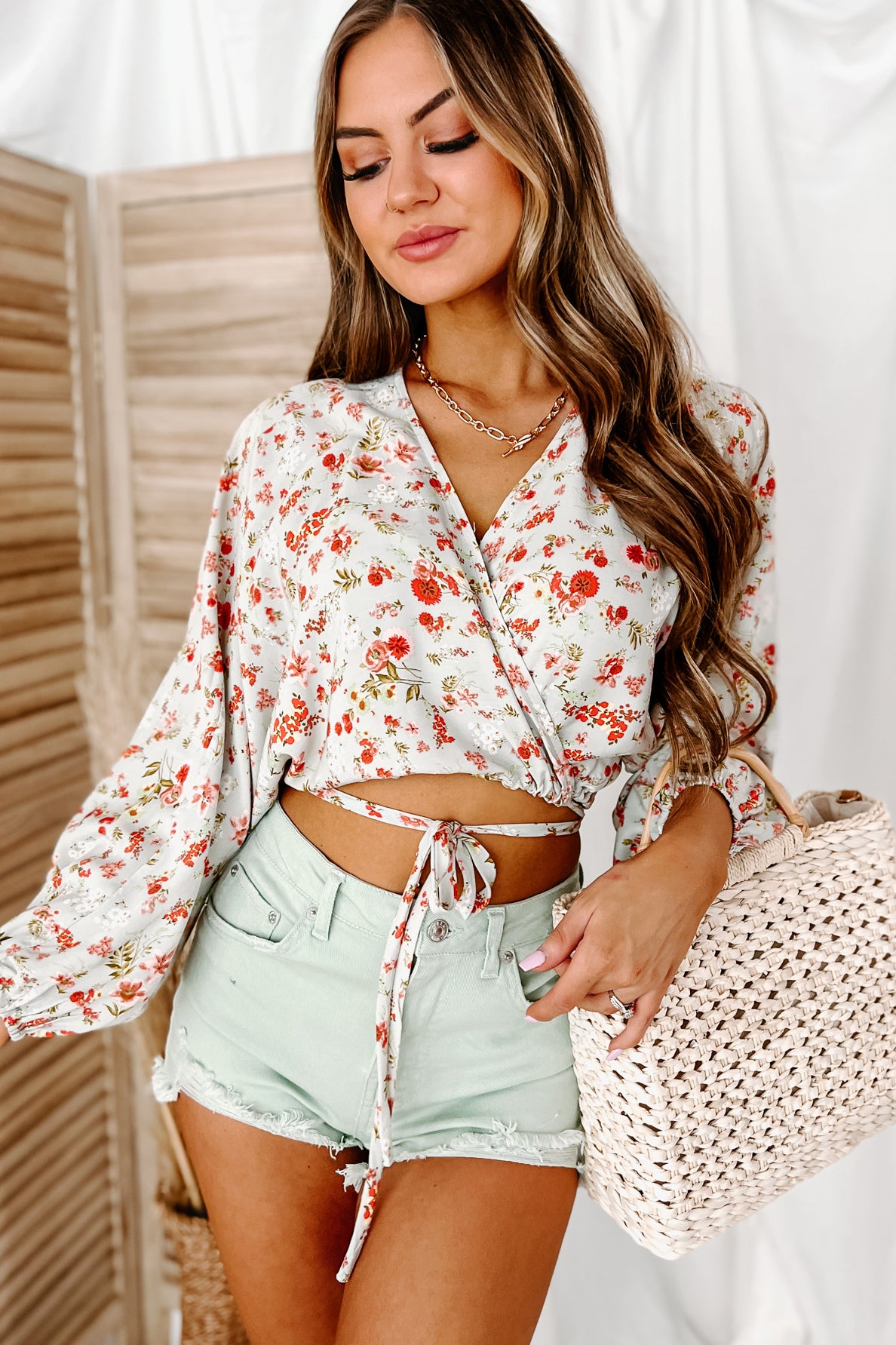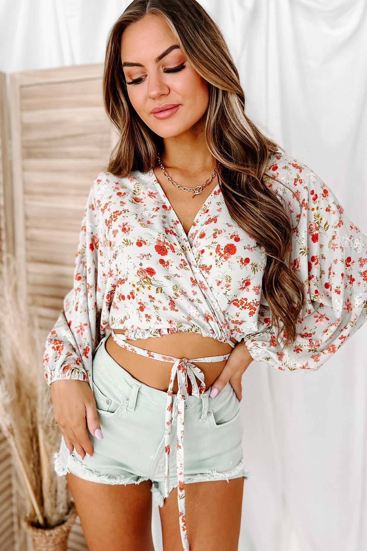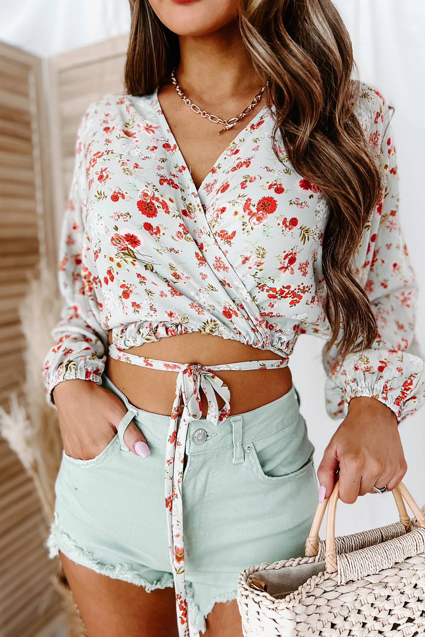 Growing Fonder Cropped Floral Wrap Top (Sage) - NanaMacs