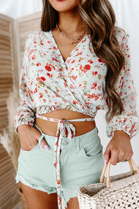 Growing Fonder Cropped Floral Wrap Top (Sage)