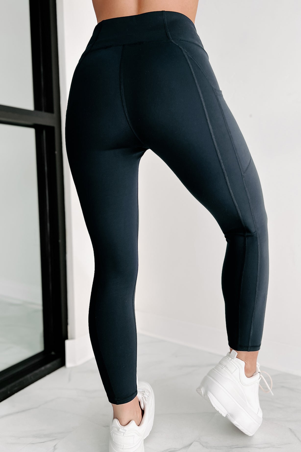 Gym Selfie High Waist Side Pocket Leggings (Black)
