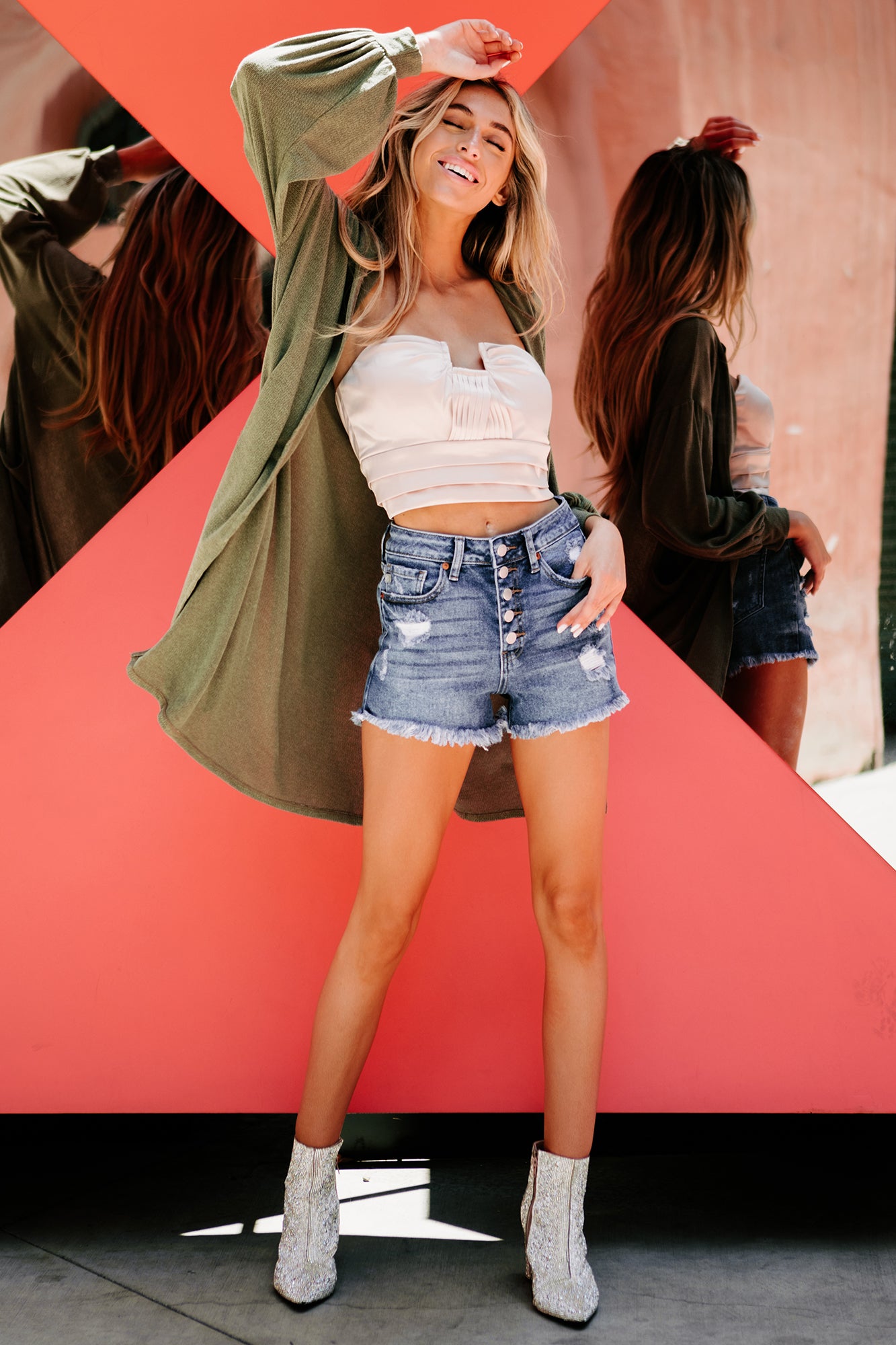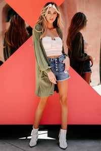 This Olive, Open Front, Hooded Cardigan Is One Of Those Pieces You Keep Out Year-Round Because You Love It So Much!