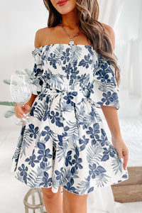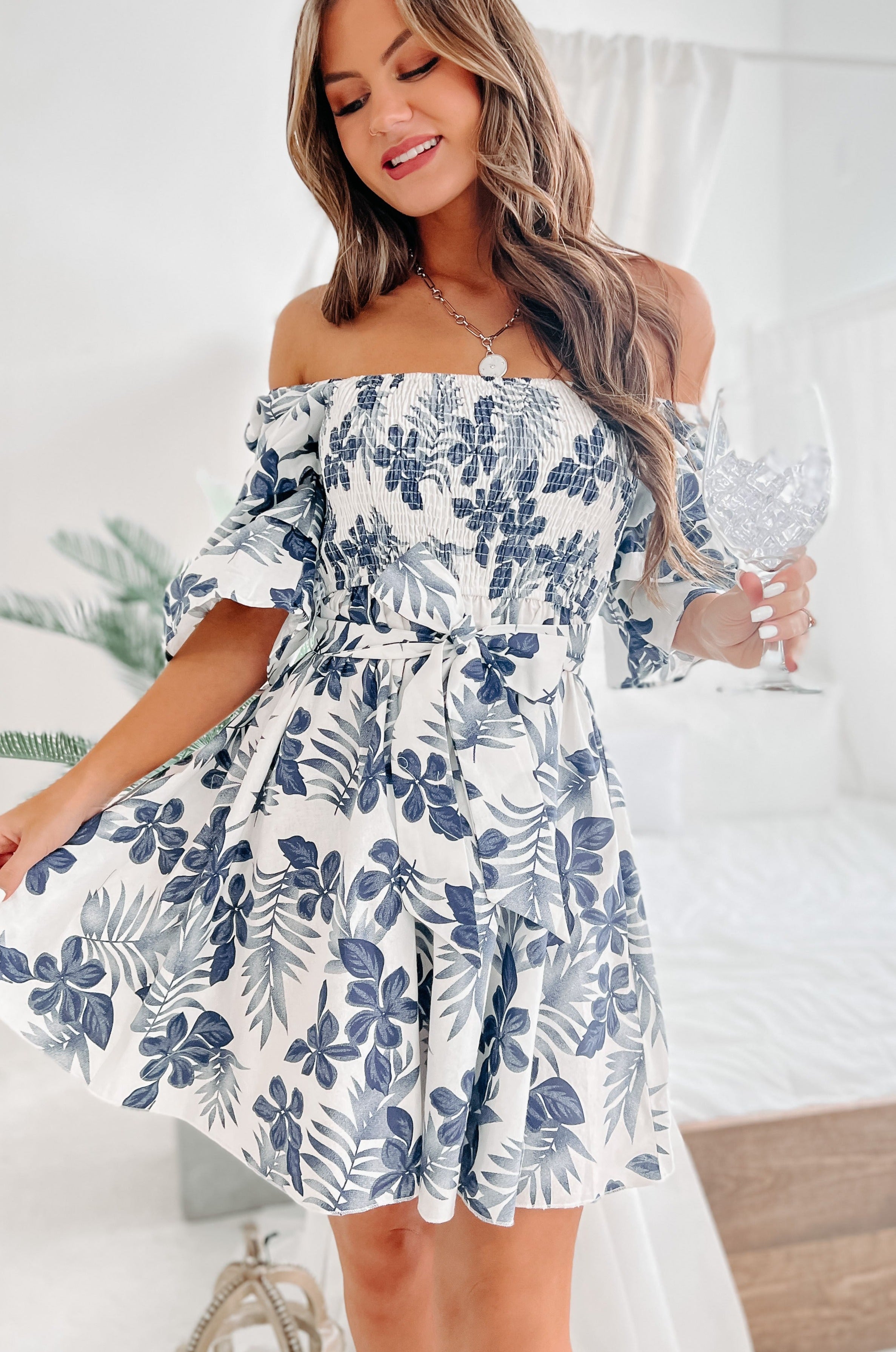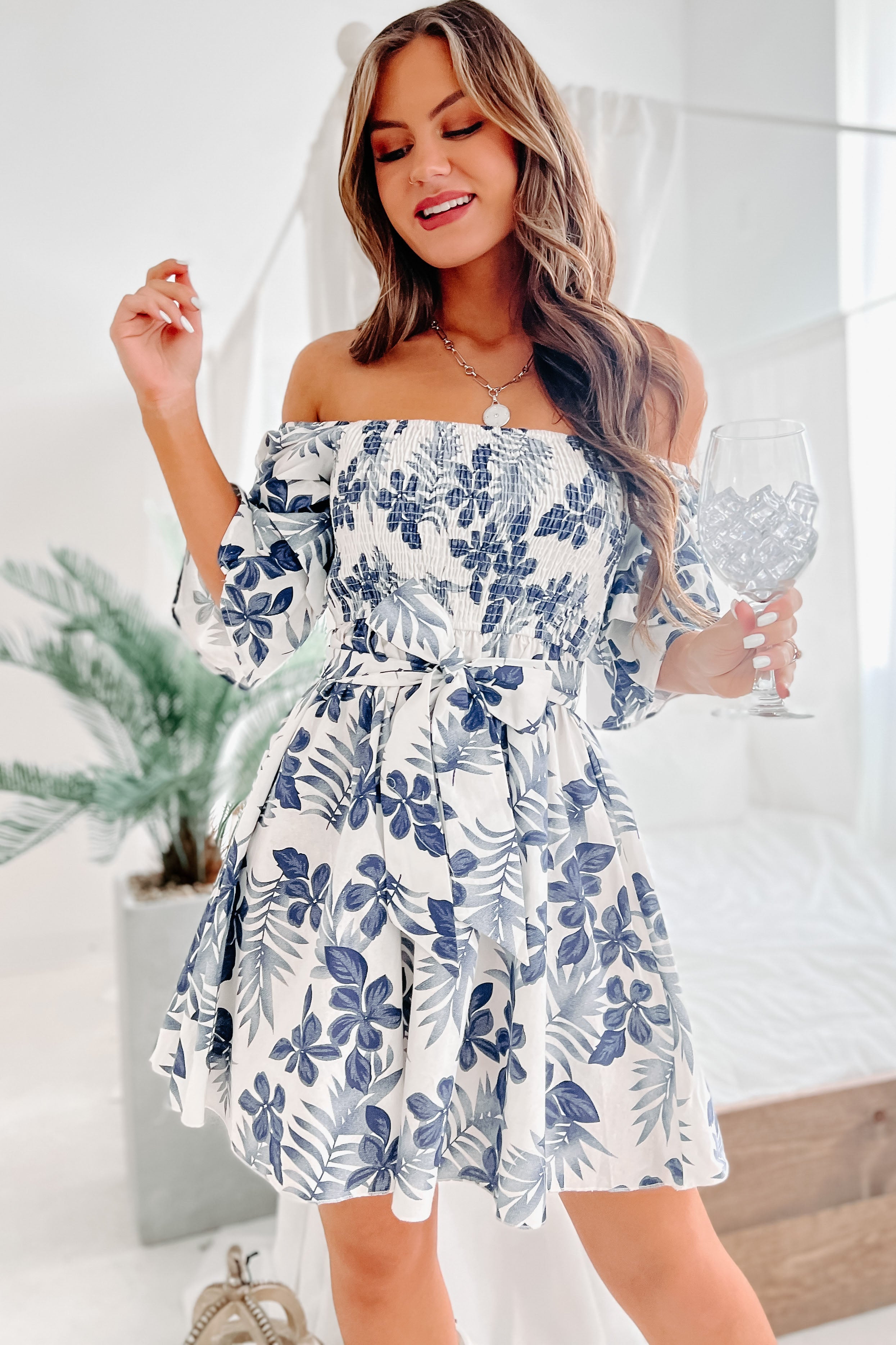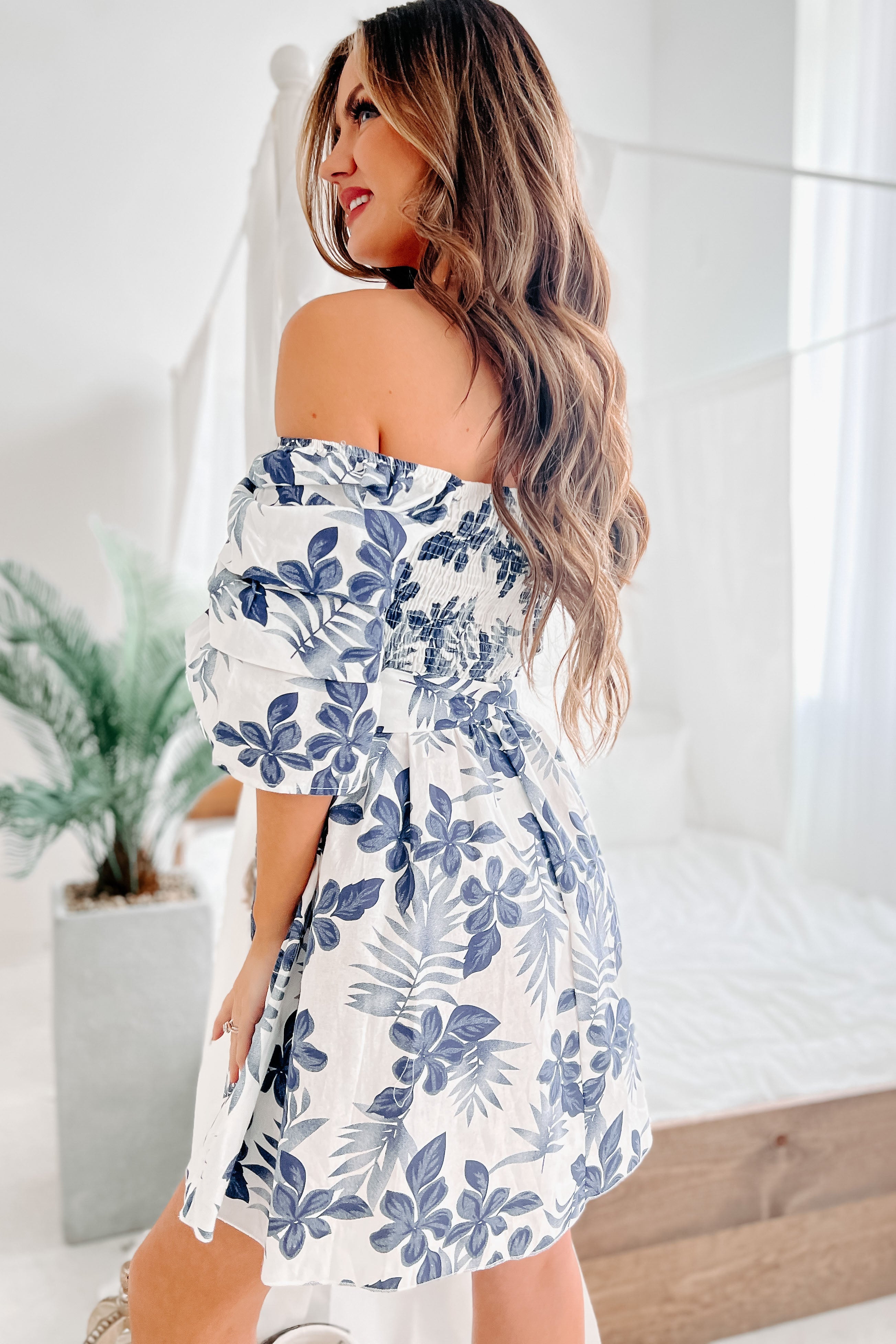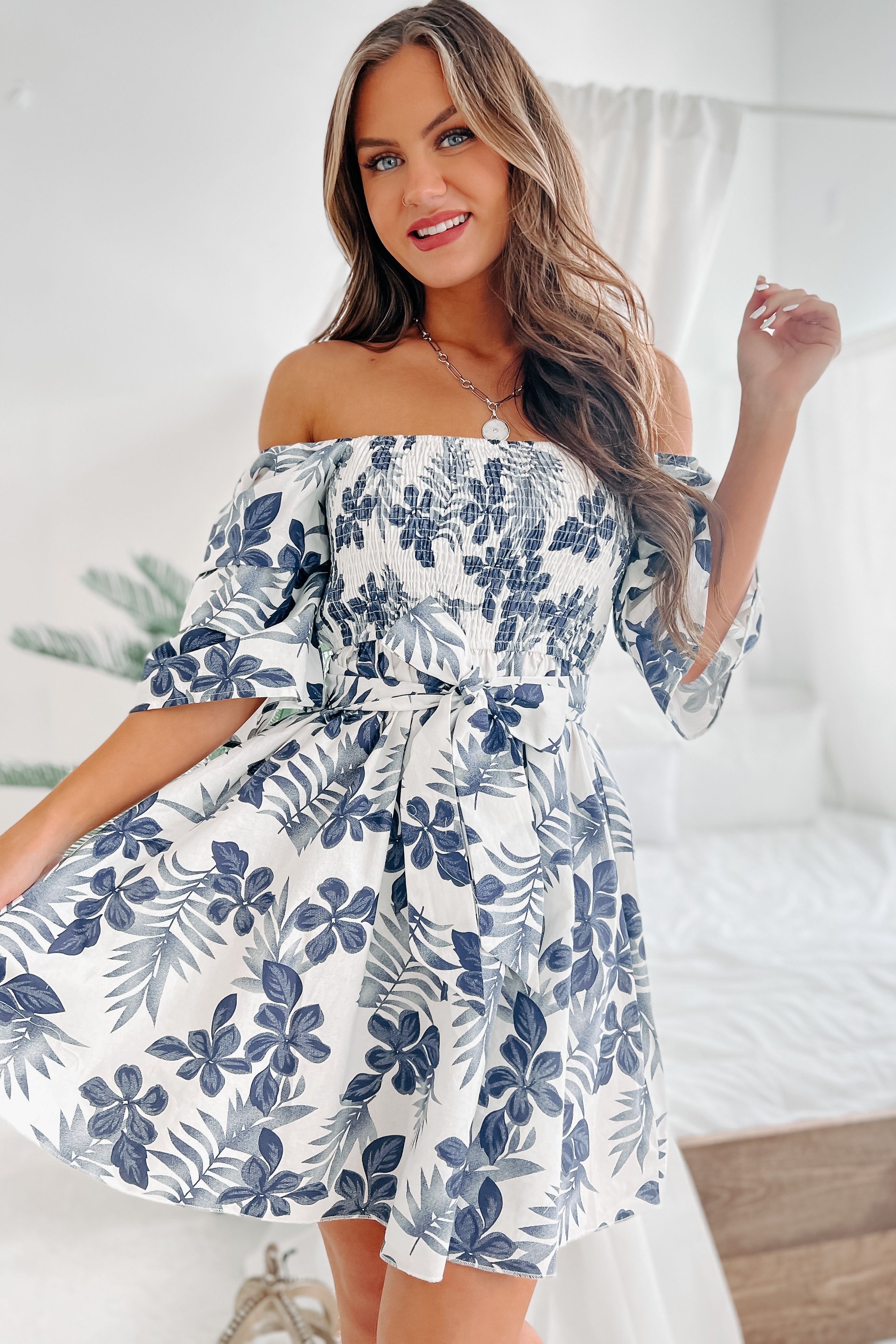 Hanging Onto Hope Smocked Floral Mini Dress (White/Navy)