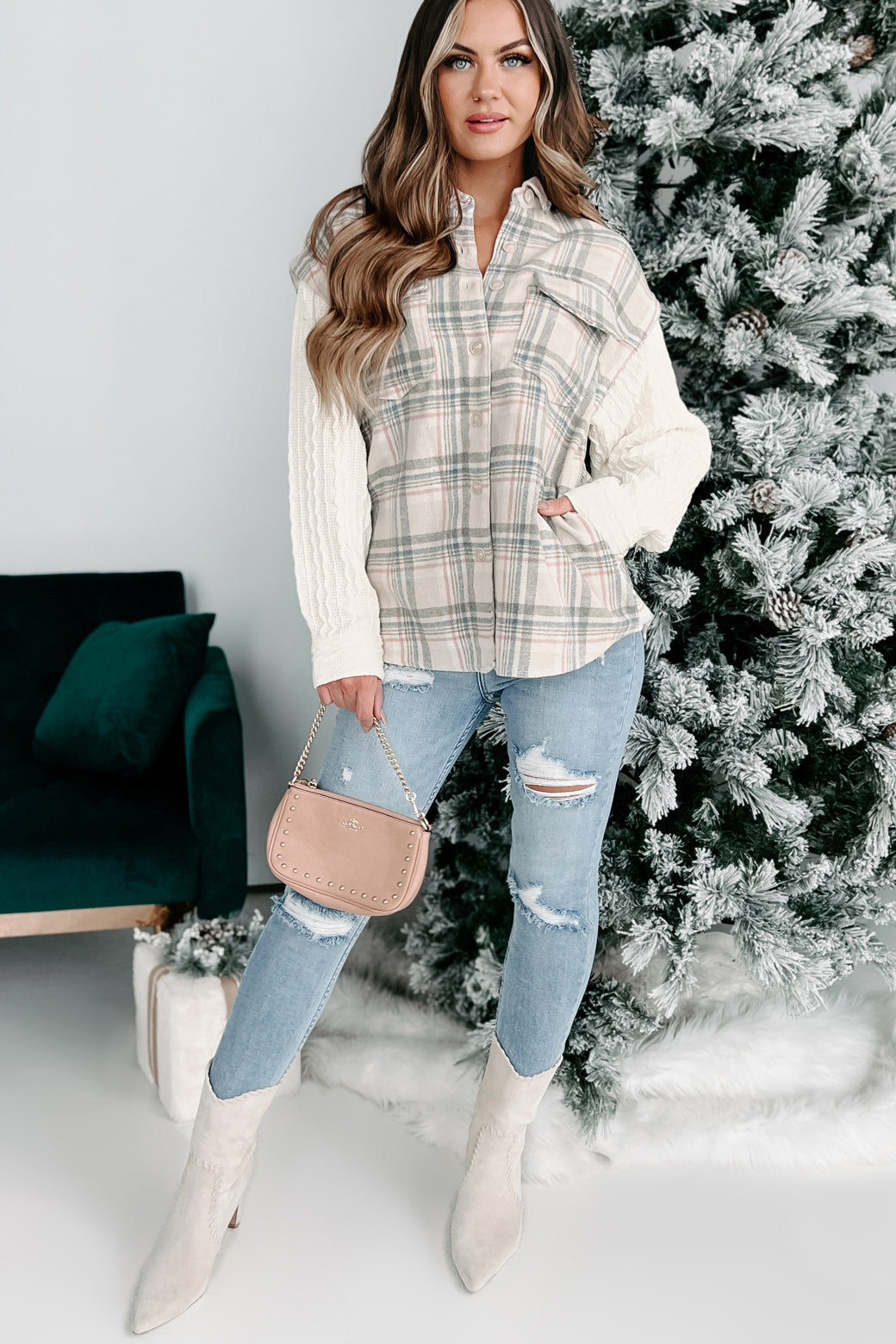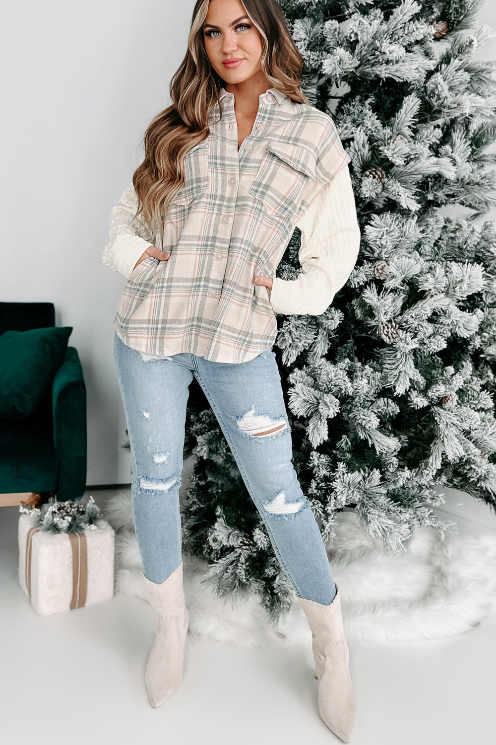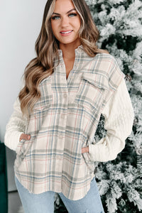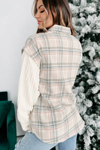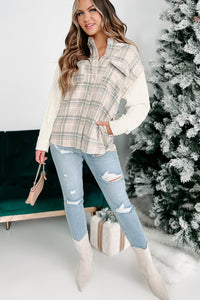 Happy Place Mixed Media Plaid Shacket (Taupe)