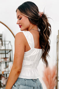 Happy With Myself Ruched Cotton Tank Top (White) - NanaMacs