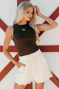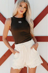 Hay There Embroidered Sleeveless Top (Chocolate)