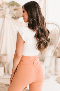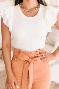 Headed For The Hamptons Ribbed Ruffle Sleeve Bodysuit (Ivory)