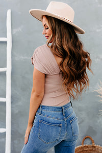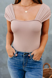 Heard It All Before Ribbed Ruched Strap Bodysuit (Mocha)