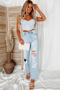 Look & Feel Amazing In This Pale Blue, Corset Crop Top! The Padded Cups Are An Added Bonus!
