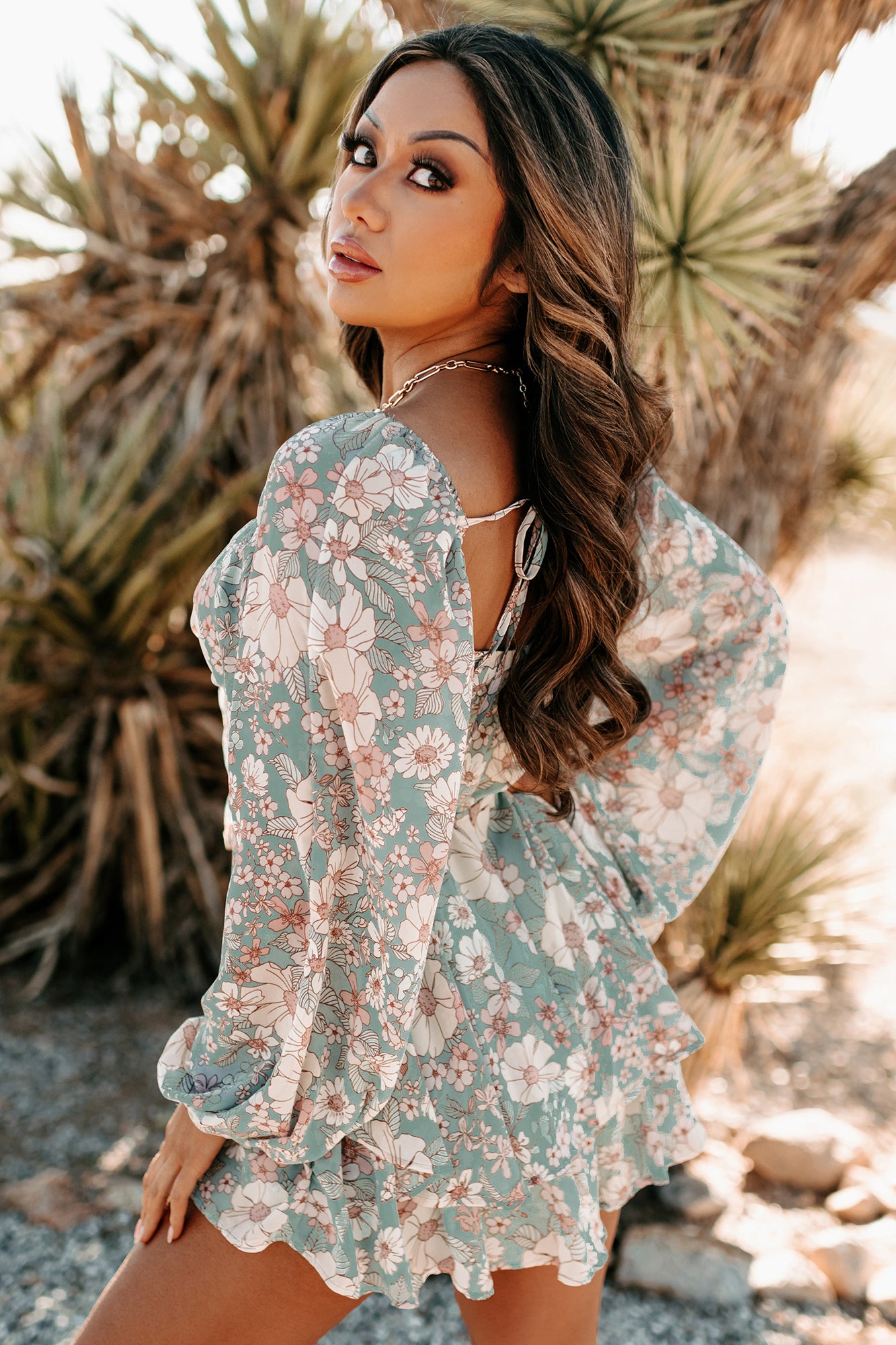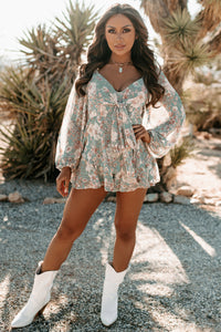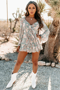 Hearts Align Long Sleeve Floral Print Romper (Pink/Teal)