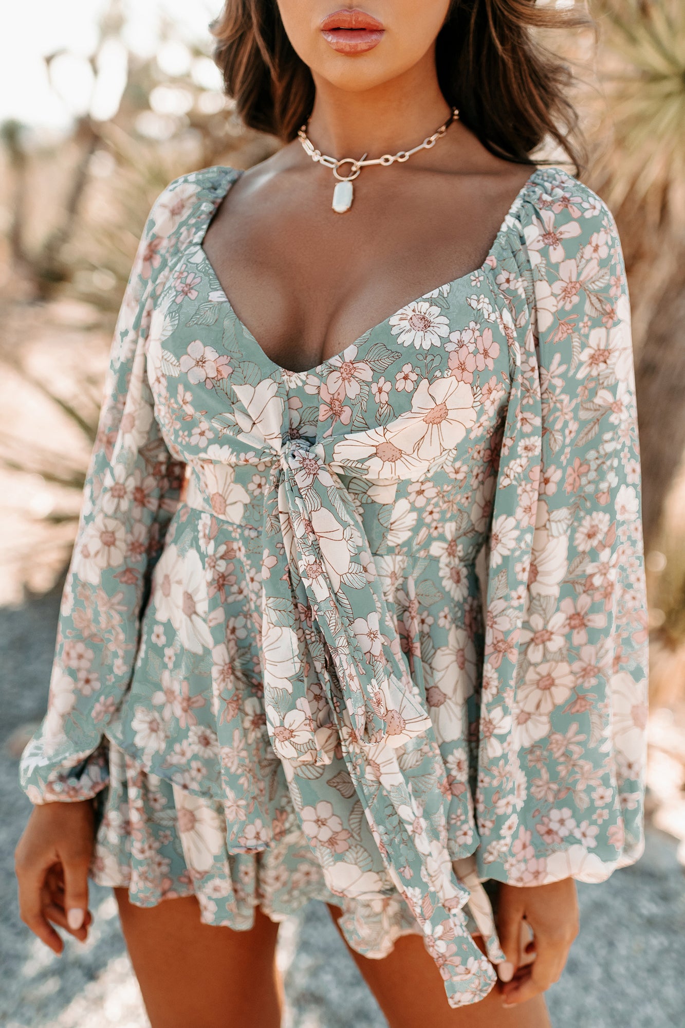Hearts Align Long Sleeve Floral Print Romper (Pink/Teal) - NanaMacs