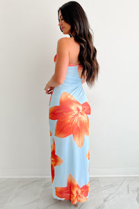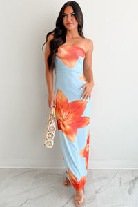 Here To Flirt Strapless Floral Maxi Dress (Light Blue)