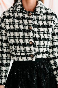 Hold Me Forever Houndstooth Print Cropped Sherpa Jacket (Black)