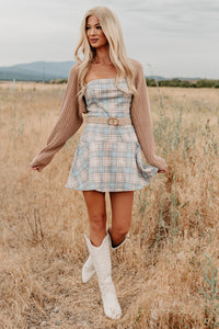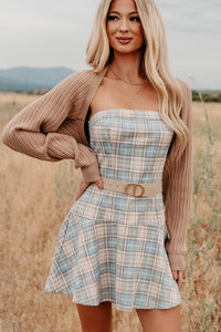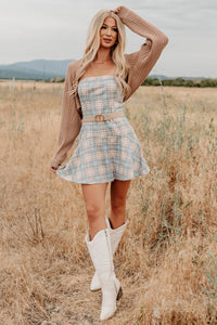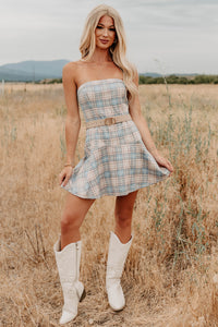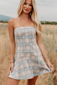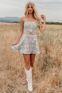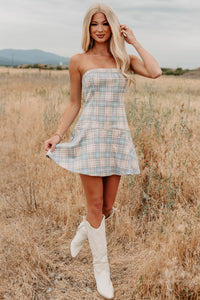 Hold Me Here Strapless Plaid Mini Dress (Light Blue)