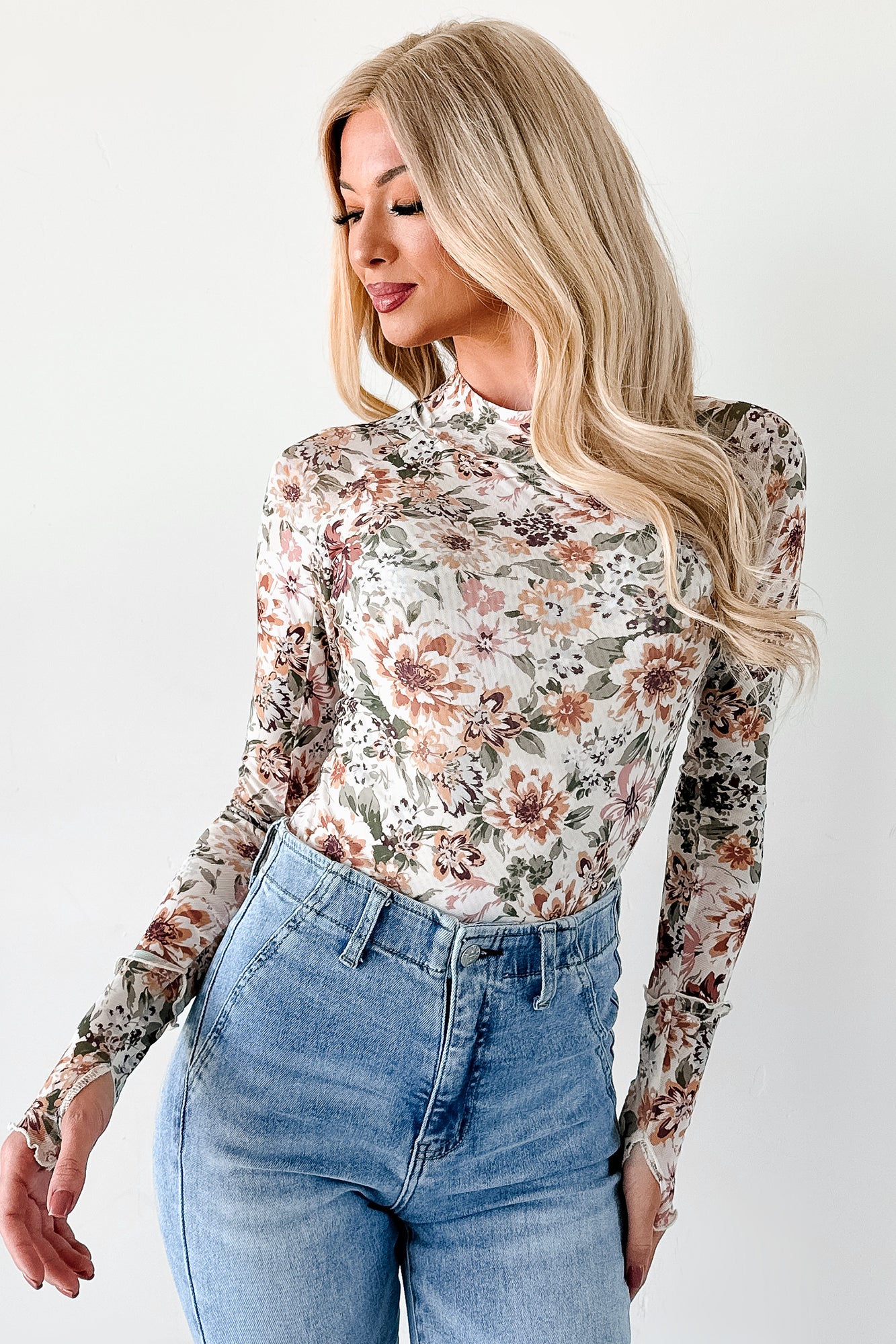 Hold My Hand Floral Mesh Long Sleeve Top (Cream) - NanaMacs