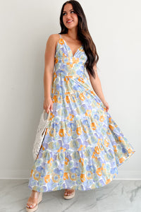 Honey, Please Sleeveless Floral Maxi Dress (Peri Blue)