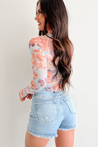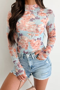 Hooked On You Floral Mesh Long Sleeve Top (Peach/Blue)