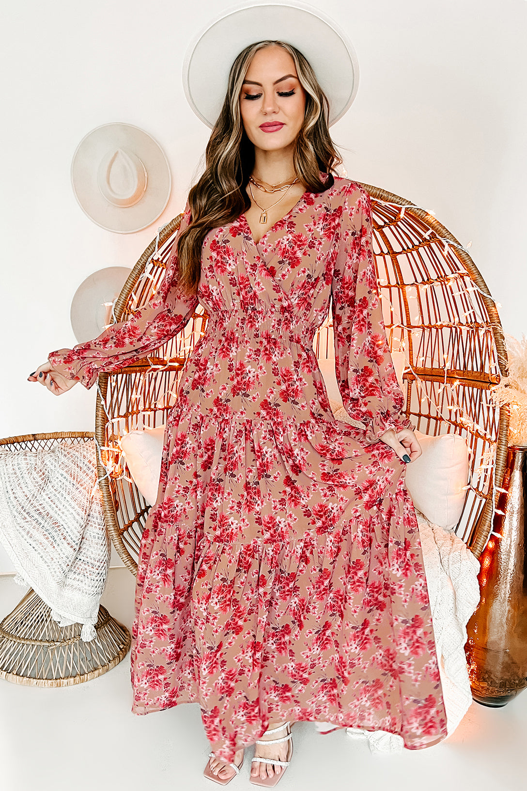 Horizon Views Tiered Ruffle Floral Maxi Dress (Mauve)