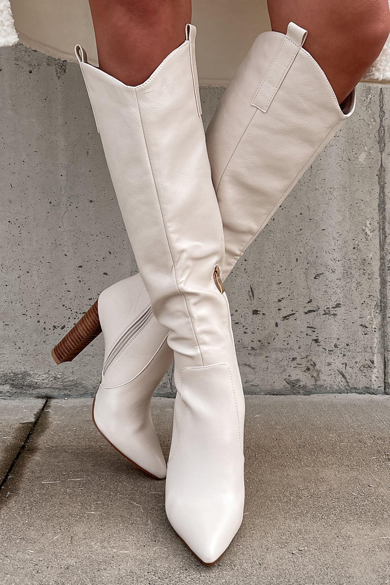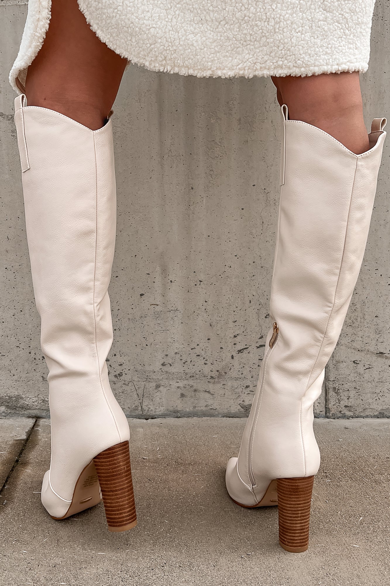 Hot Off The Press Knee High Billini Boots (Ivory)