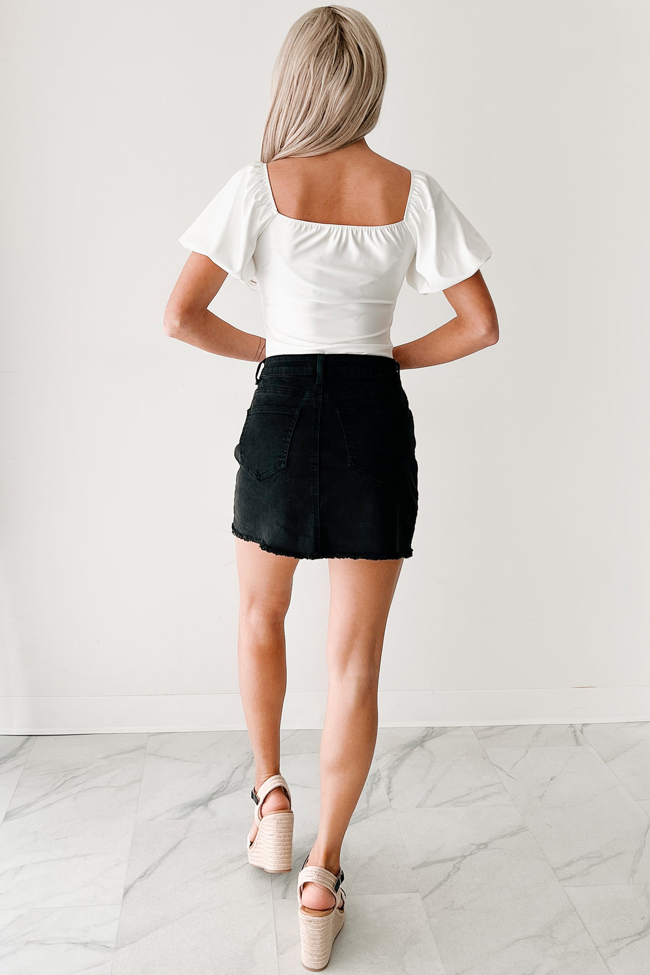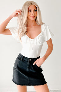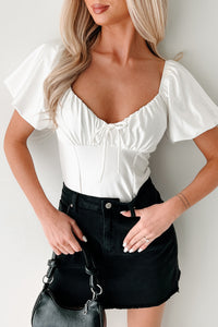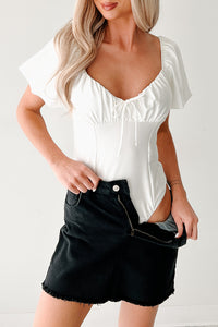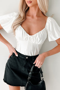 Humming Along Puff Sleeve Scoop Neck Bodysuit (White)