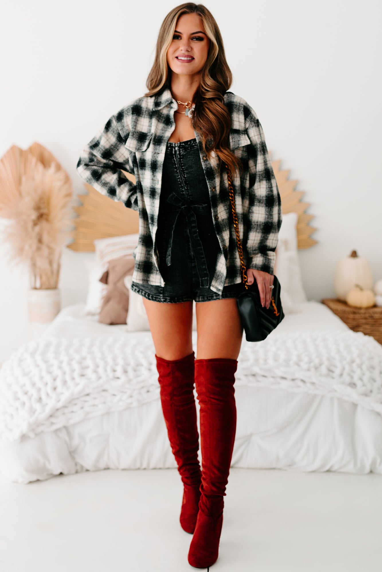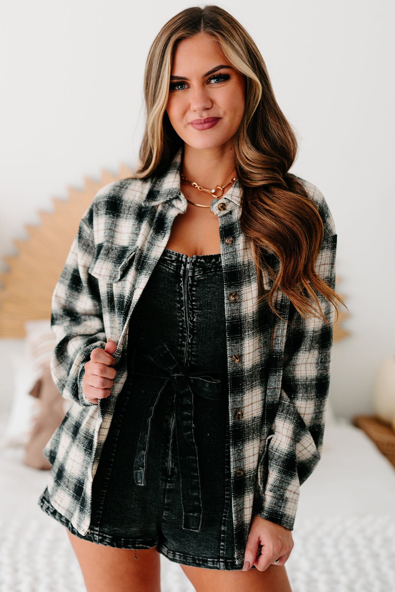 I Mean After All Oversized Plaid Shacket (Black) - NanaMacs