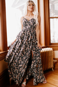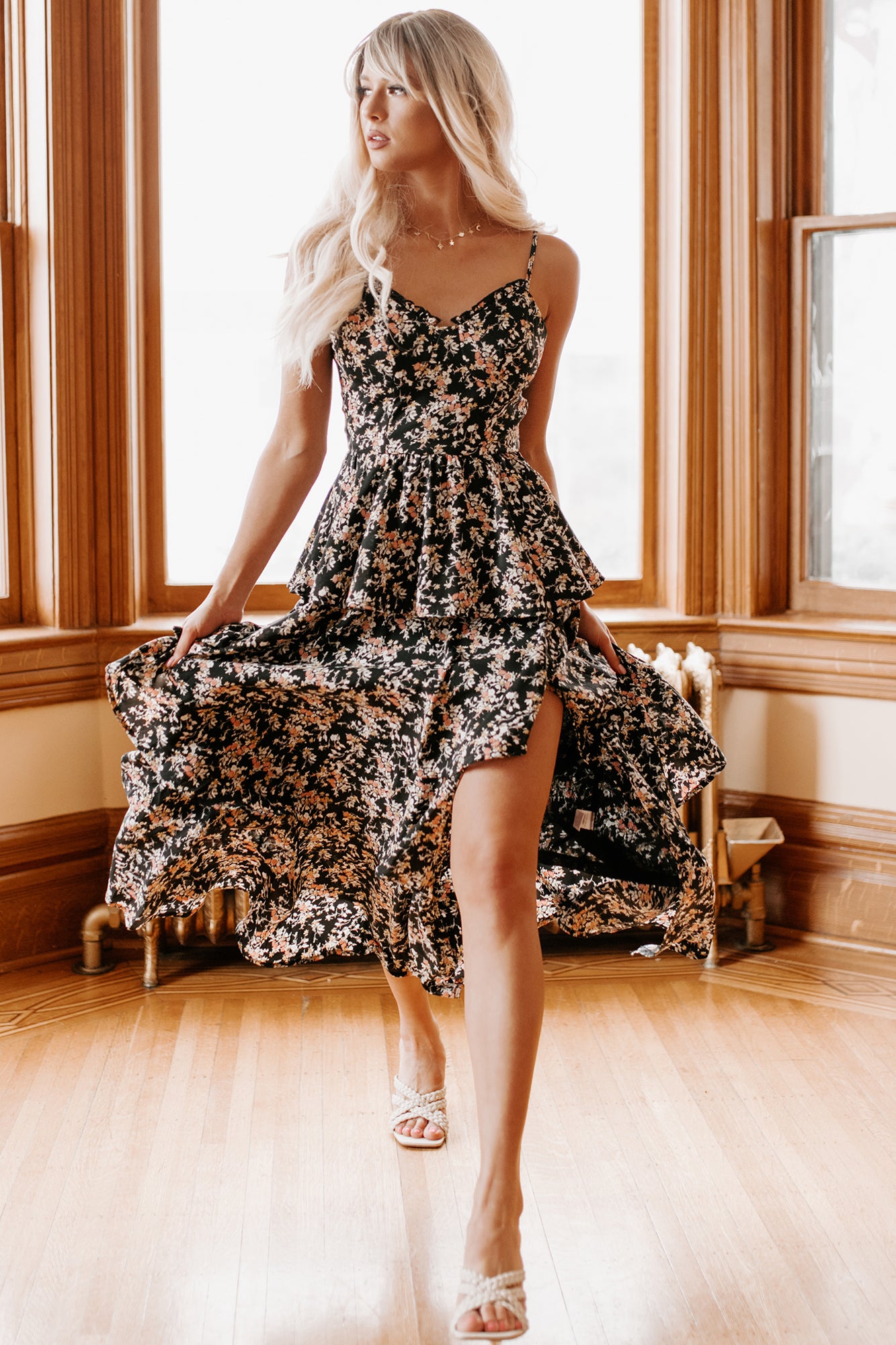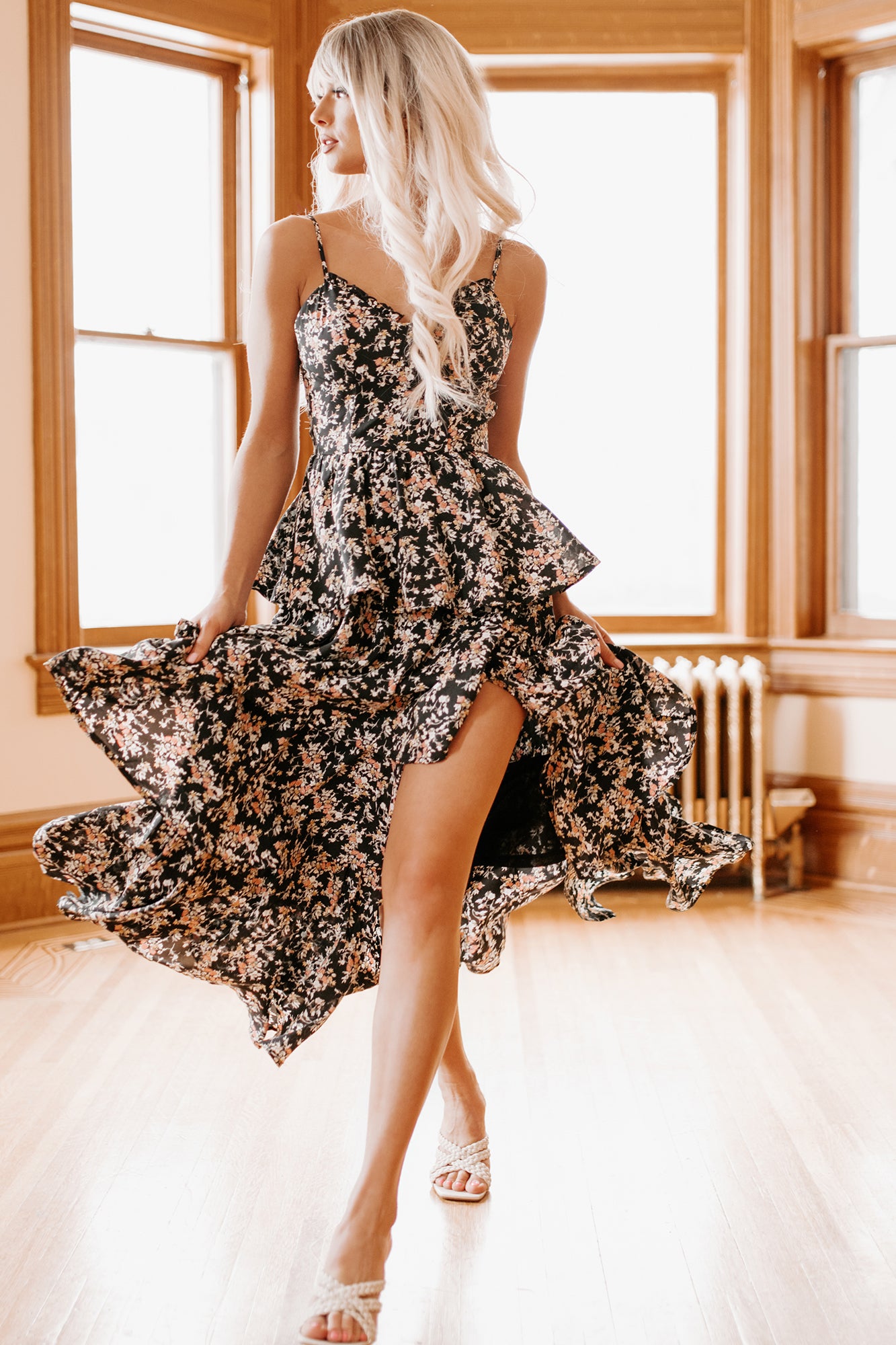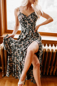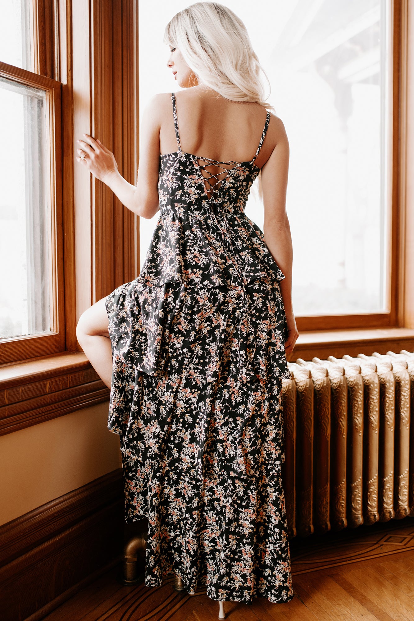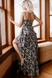 Idyllic Feelings Tiered Floral Maxi Dress (Black)