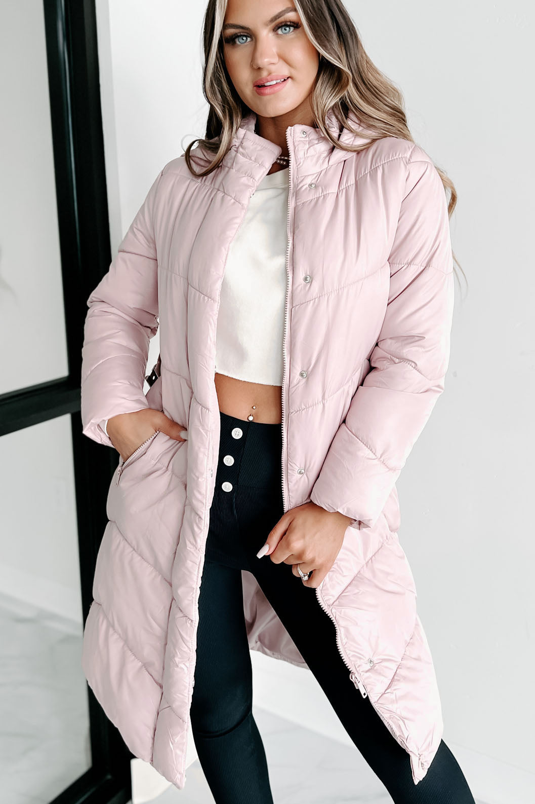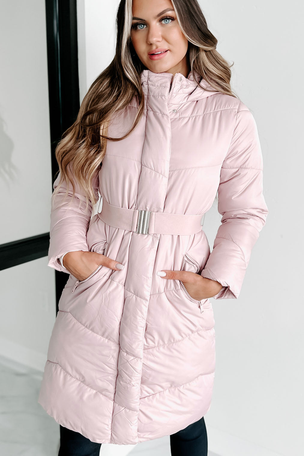 Igloos & Icicles Belted Puffer Coat (Dusty Pink)