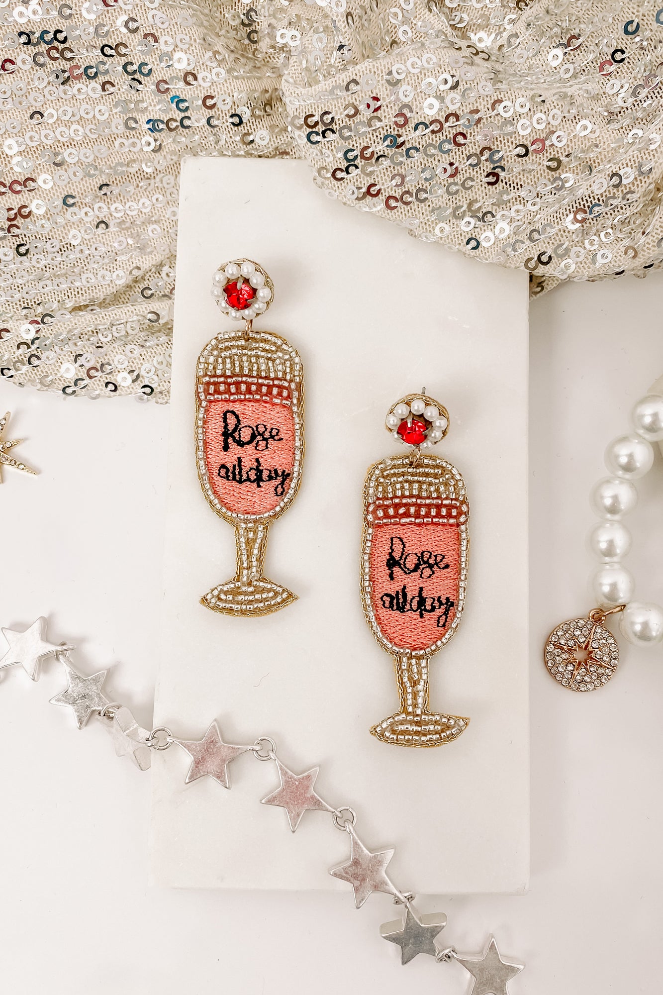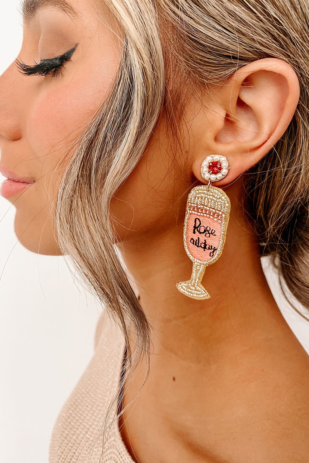 I'll Drink To That Beaded Earrings (Pink/Clear)