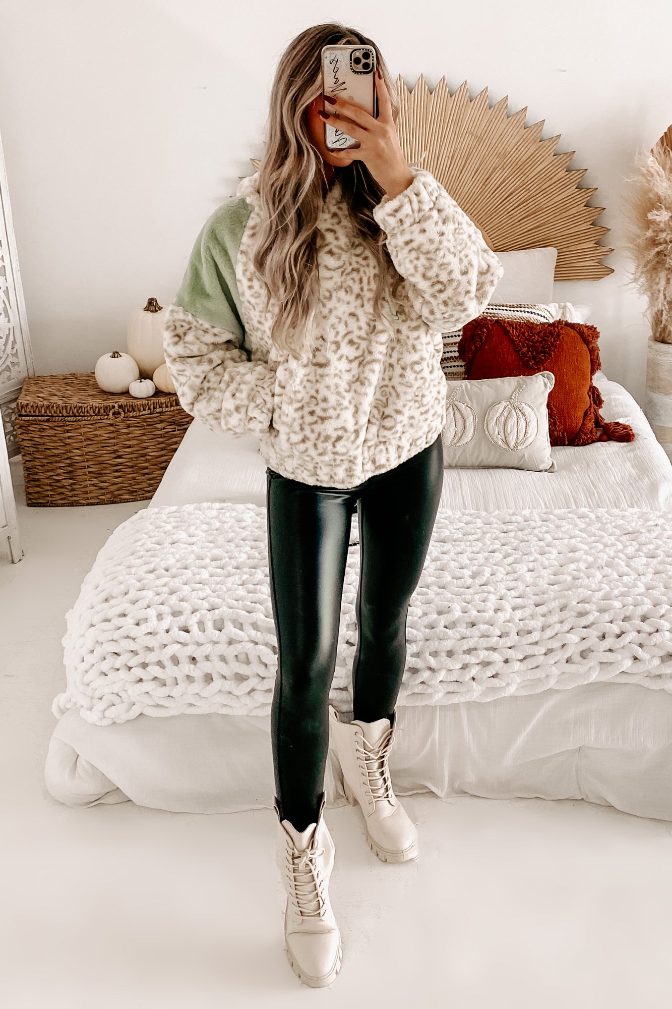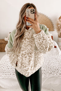 I'm All Fur It Leopard Faux Fur Hoodie (Taupe/Mint) - NanaMacs