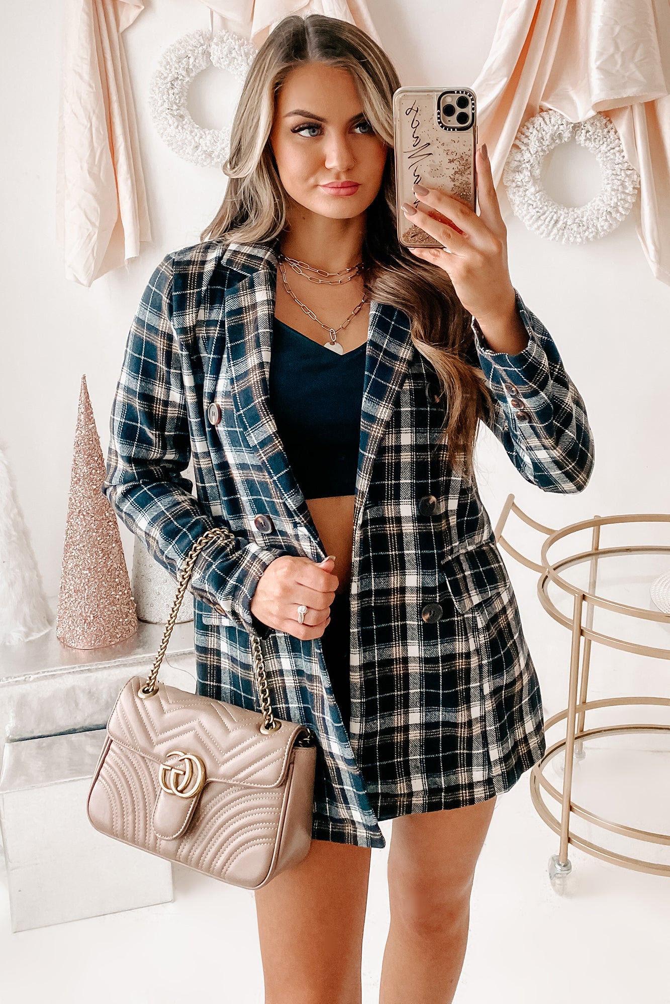 Imani Double-Breasted Plaid Blazer (Black) - NanaMacs