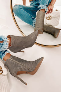 These Silver/Champagne, Pointed Toe, Glittered, Heeled Booties Are Going To Be The Star Of Your Outfit!