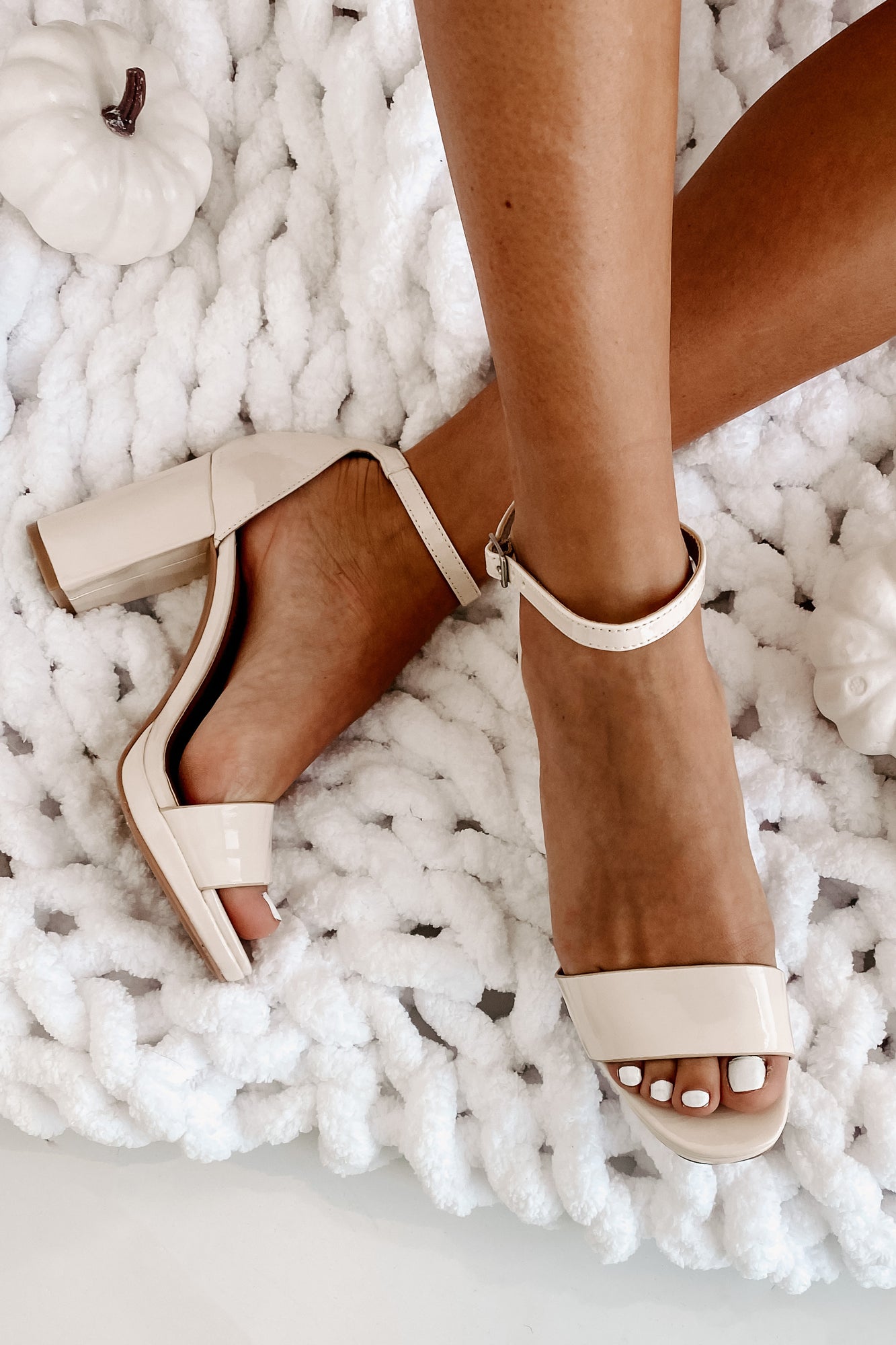 These Neutral Colored, Patent Leather, Ankle Strapped, Open Toe  Heels Are Going To Work With Everything!