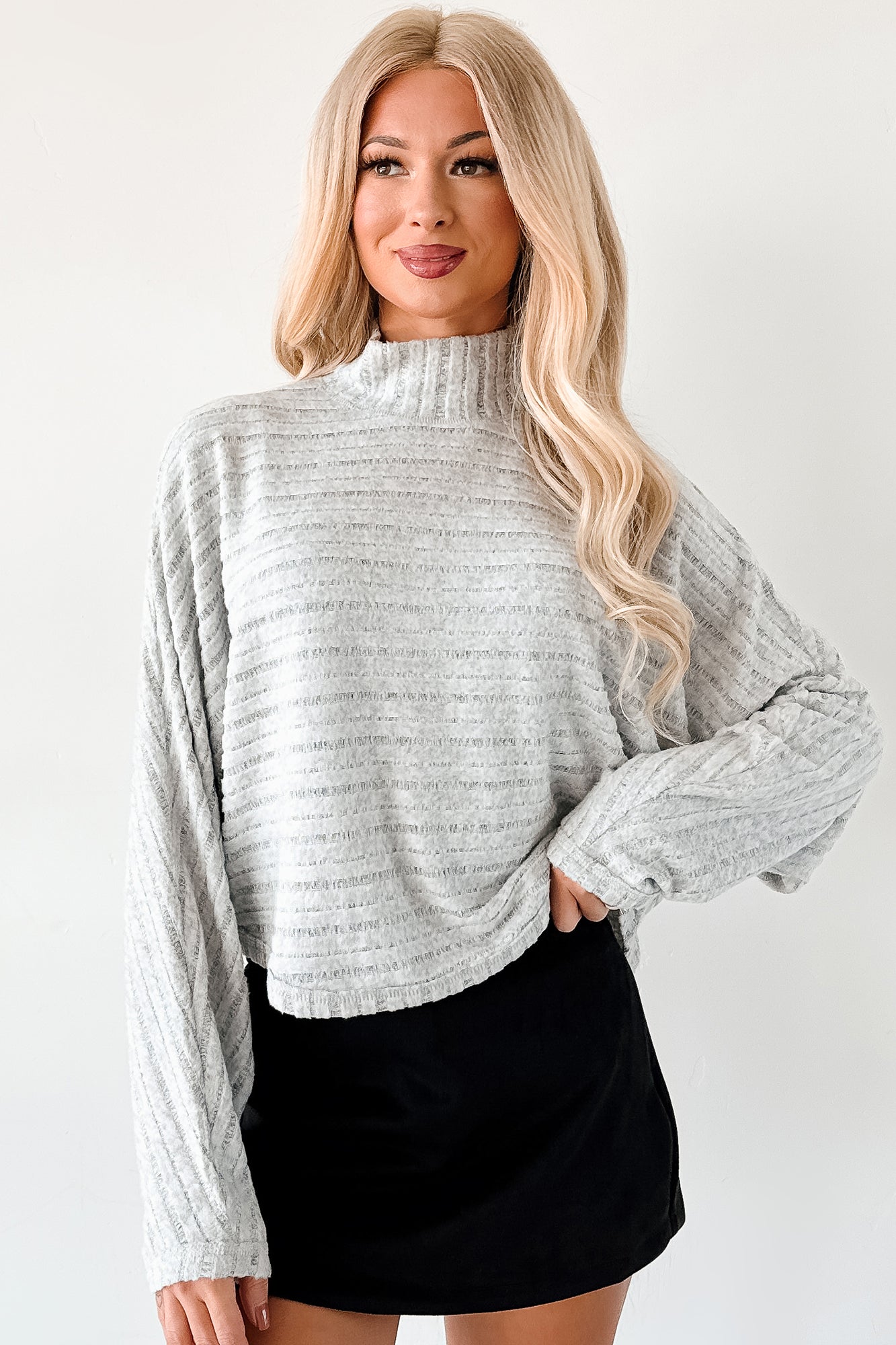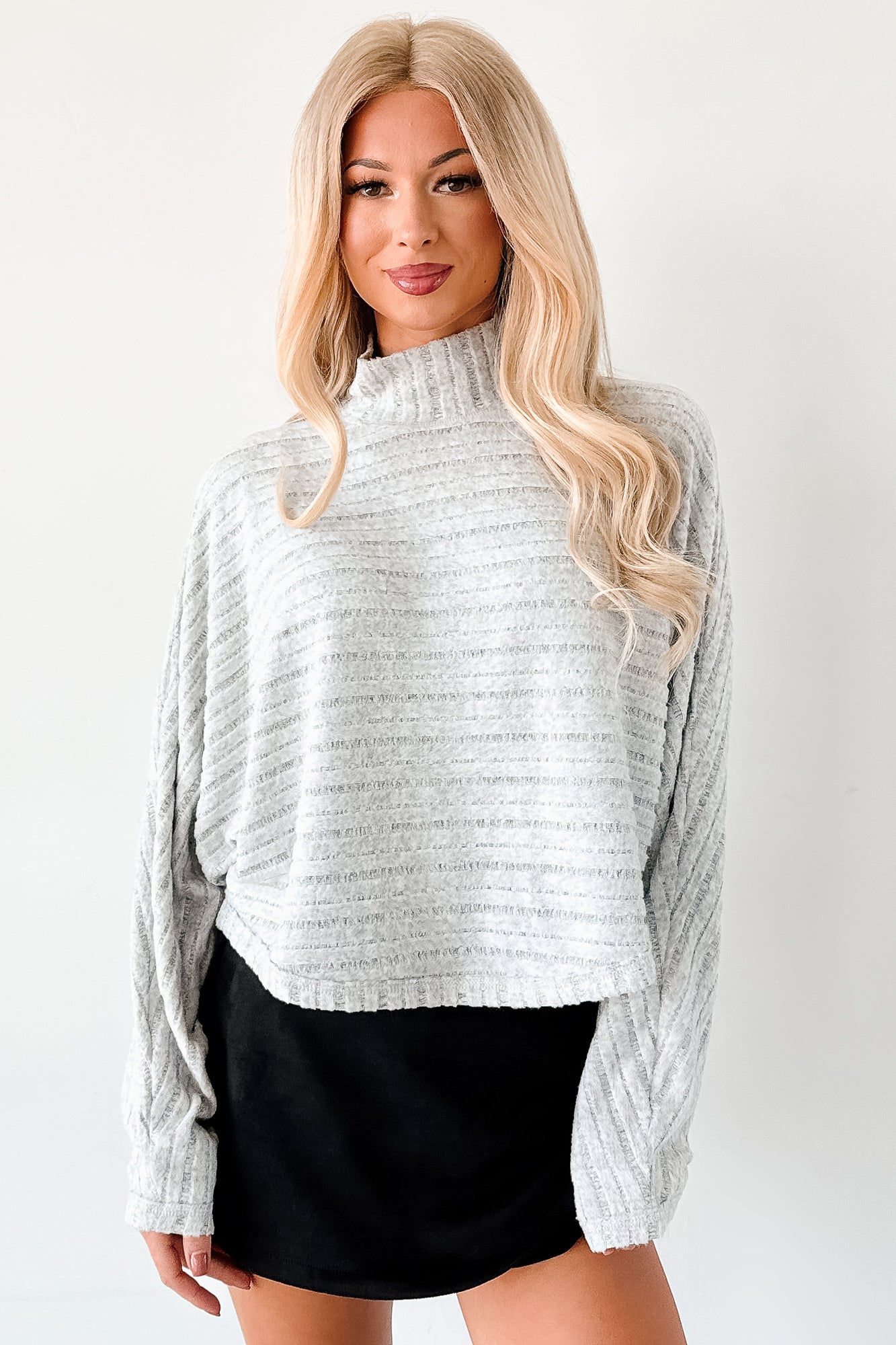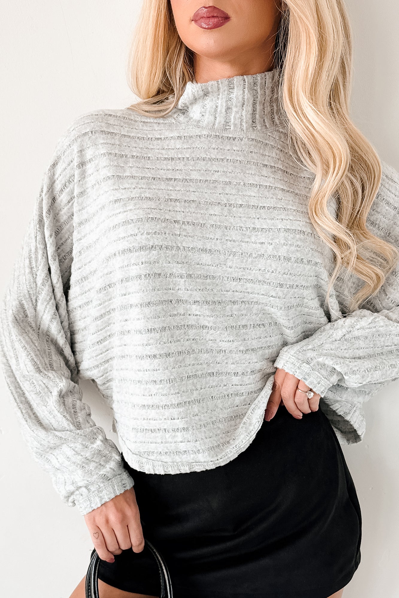 In The Clouds Textured Dolman Long Sleeve Top (Heather Grey)
