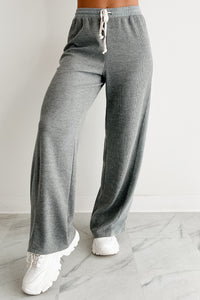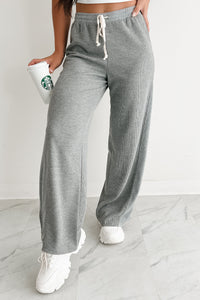 In The Daylight Contrast Tie Waffle Knit Pants (Heather Gray)
