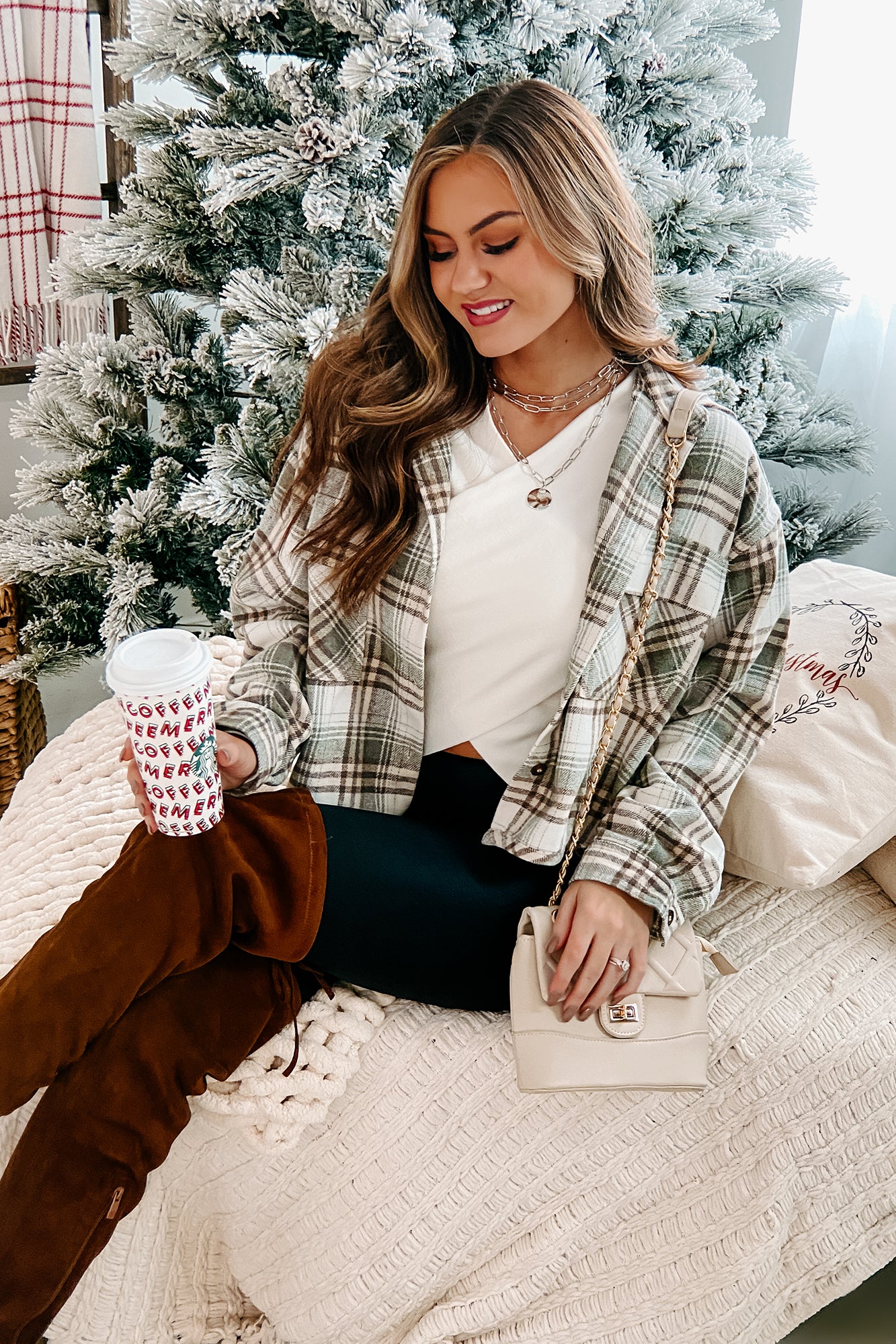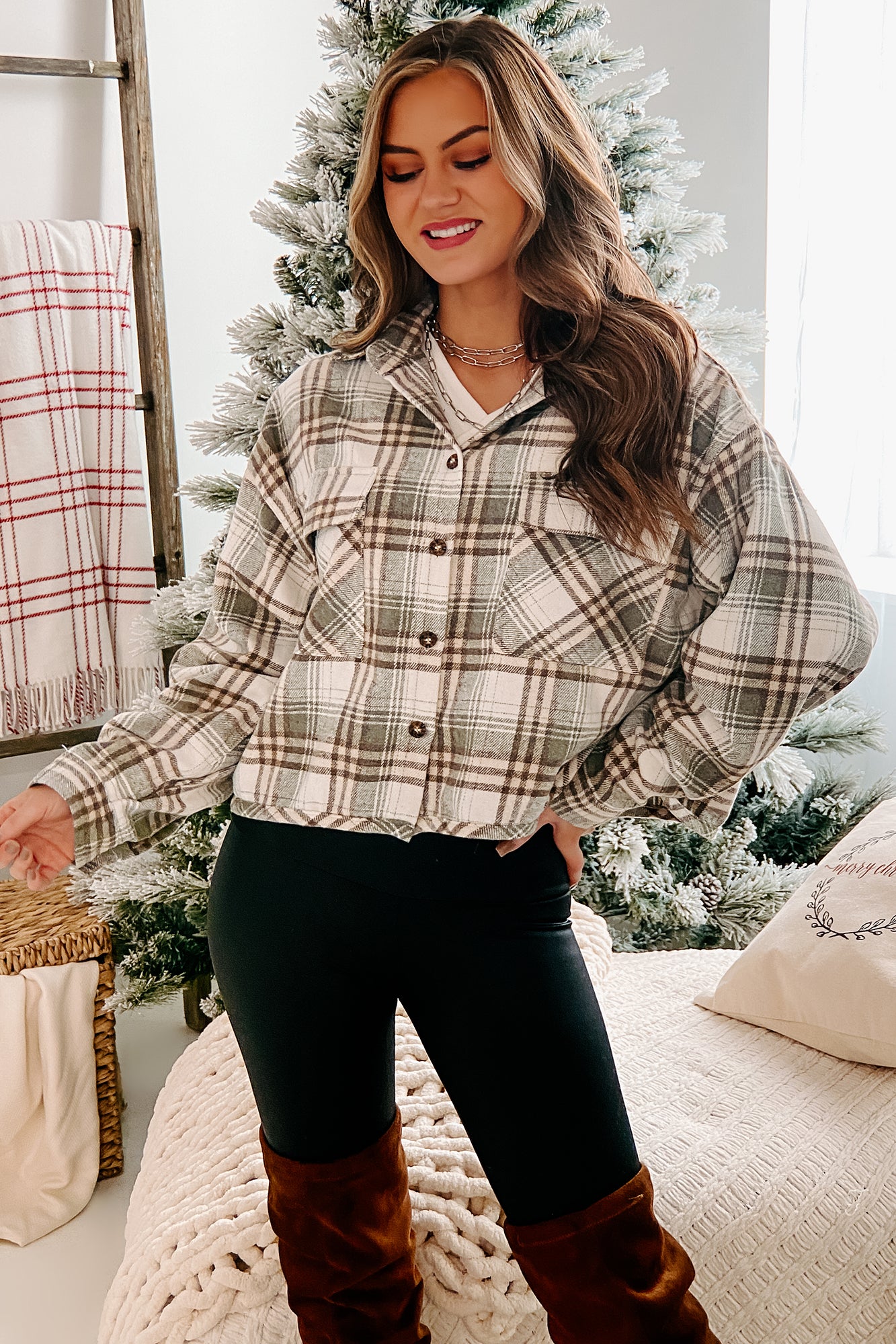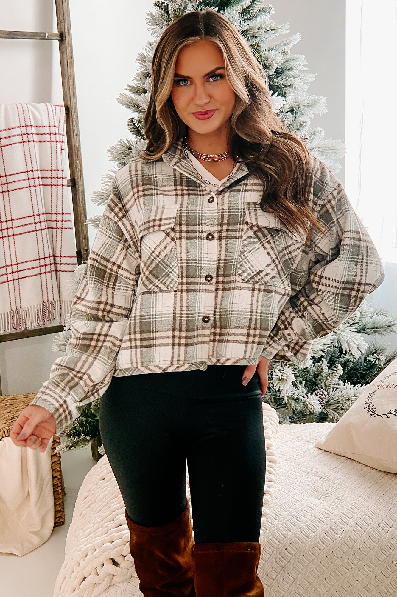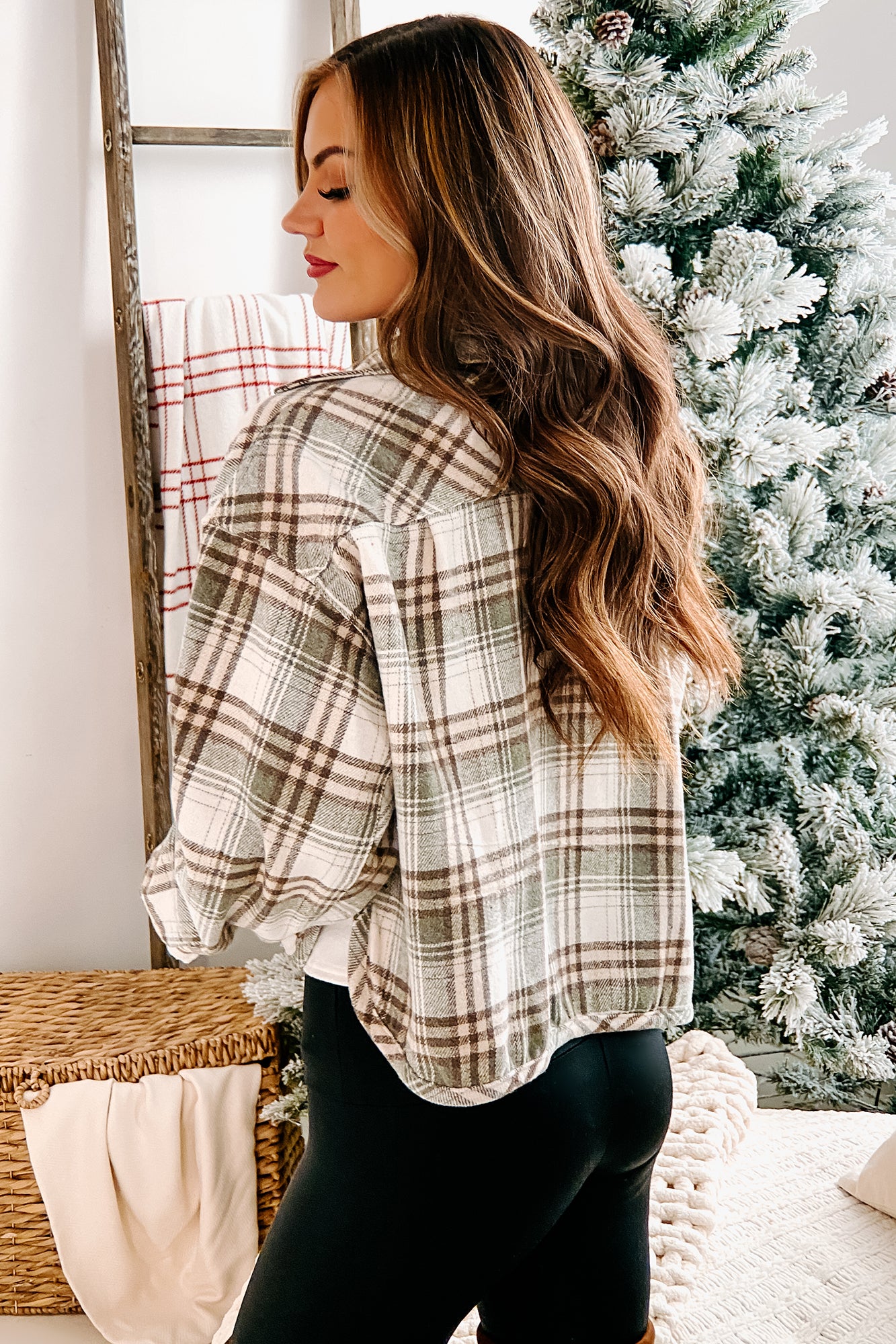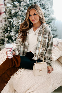 In The Woods Cropped Plaid Shacket (Off White/Sage) - NanaMacs