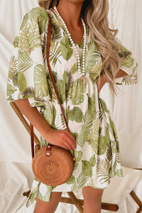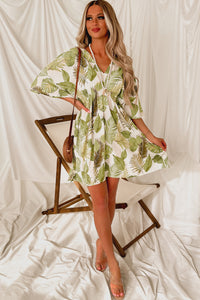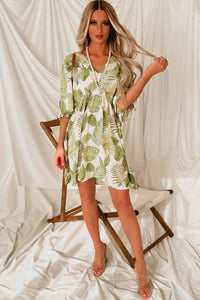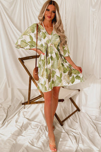 In Total Disbe-Leaf Leaf Print Kimono Dress (Ivory/Green)