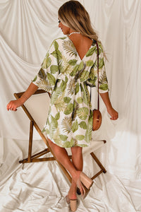 In Total Disbe-Leaf Leaf Print Kimono Dress (Ivory/Green) - NanaMacs