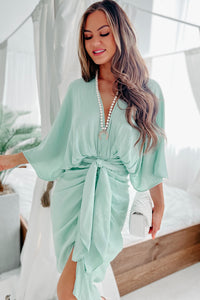 Inexplicable Love Tie-Waist Satin Midi Dress (Mint)