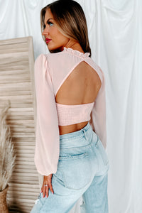 Inexplicably Gorgeous Cut-Out Ruched Long Sleeve Crop Top (Pastel Pink)
