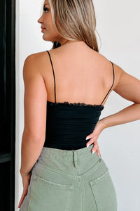 Infatuated With You Lace-Up Ruche Mesh Bodysuit (Black)