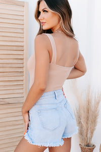 If You're Looking For A Good Basic Bodysuit, Girl We Got You! Snag This Nude, Ribbed V-Neck Bodysuit To Pair With All Your Favorite Skirts, Shorts, & Pants! You'll Be Wearing It Year Round!