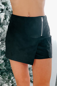 Intriguing Beauty Zipper Front Faux Suede Skort (Black) - NanaMacs