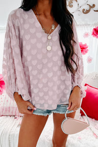 This Blush, Heart Printed Blouse Is Perfectly Sweet!