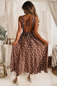 Island Breeze Palm Print Maxi Dress (Brown) - NanaMacs