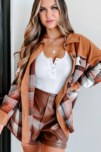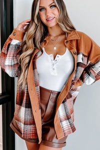 It All Adds Up Colorblock Plaid Shacket (Brown)